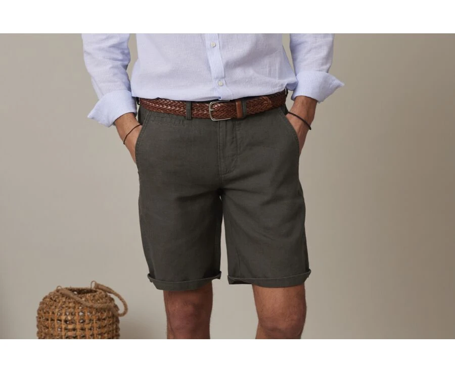 Le bermuda Borys est réalisé dans une serge 100% lin, avec une finition lavée. La coupe Standard est droite et confortable.