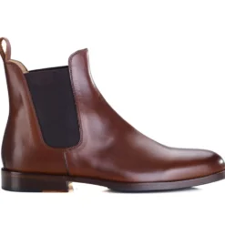 Réalisée en cousu Blake avec un dessus en veau box français patiné des tanneries d’Annonay sur semelle en cuir avec patin en gomme avec trépointe en cuir, elle allie le confort d’une boot à l’allure d’un best-seller.
