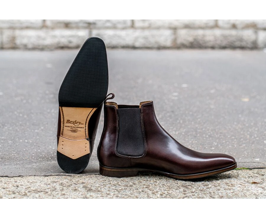 Cette bottine homme est réalisée en cousu Blake et veau box aniline français desTanneries d’Annonay patiné à la main ou en velours de grande qualité traité hydrofuge, sur semelle en cuir avec un patin en gomme, sans trépointe. et allie le confort d’une boot à une ligne très mode !