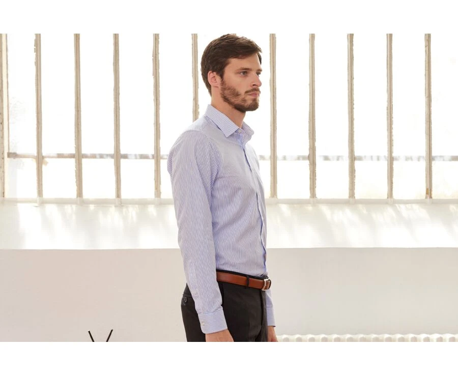 Cette chemise à rayures homme est contemporaine, parfaite pour une tenue business.