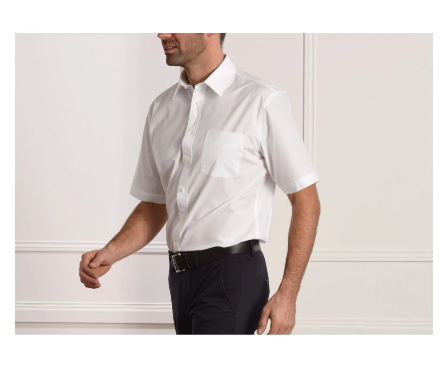 La chemise homme Albert Manches Courtes Blanche est réalisée en popeline 100% coton double fil 115g/m², avec une finition toucher doux.