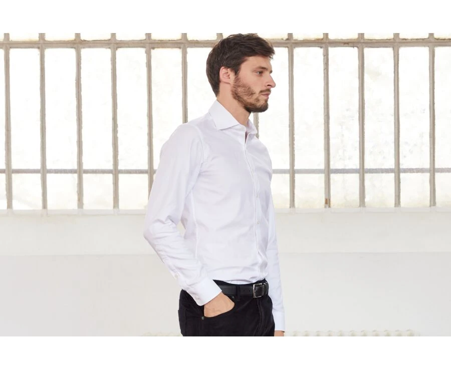La chemise blanche homme Ottavio est réalisée en oxford 100% coton double fil 135g/m², avec une finition toucher doux.