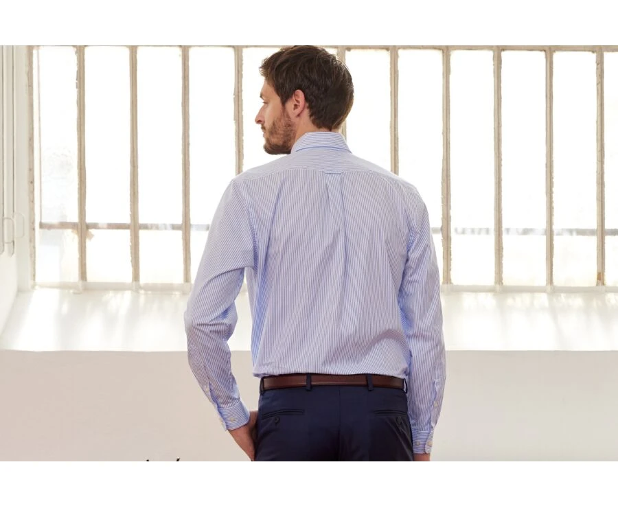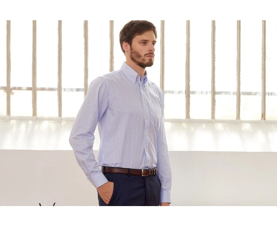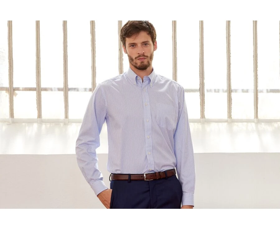 Une chemise manches longues avec un col américain, au dessin intemporel à porter de façon décontractée ou plus habillée selon les occasions.