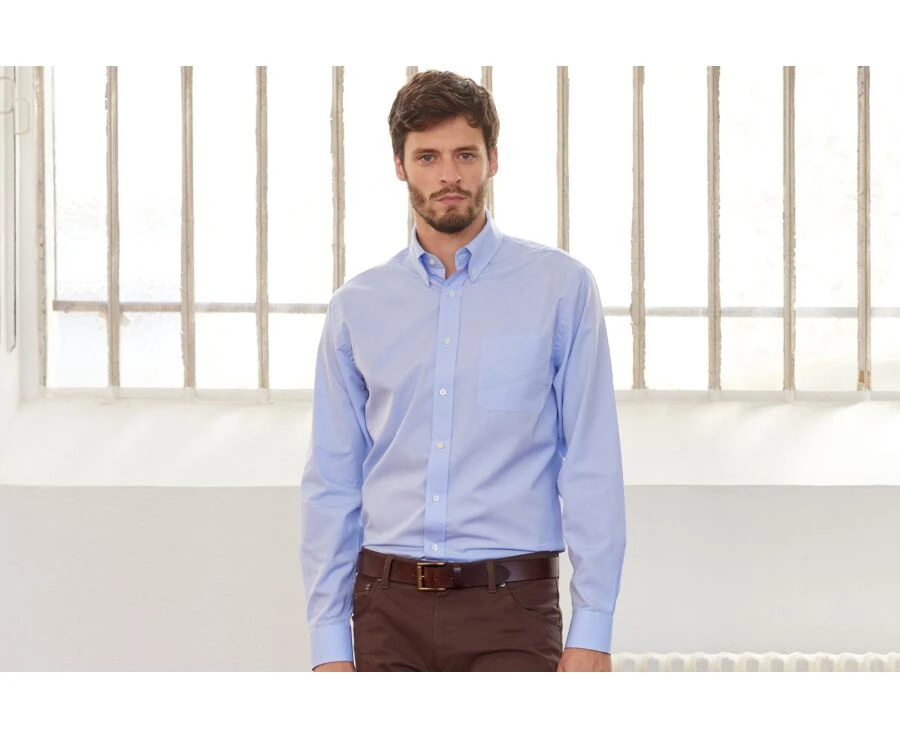 La chemise homme Tommy Bleu ciel est réalisée en oxford 100% coton double fil 115g/m², avec une finition toucher doux.