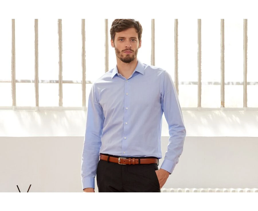 La chemise homme Louis Classic Bleu ciel est réalisée en 100% coton double fil 115g/m², avec une finition toucher doux.