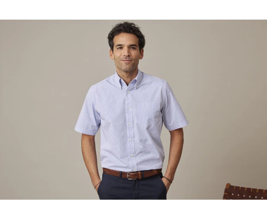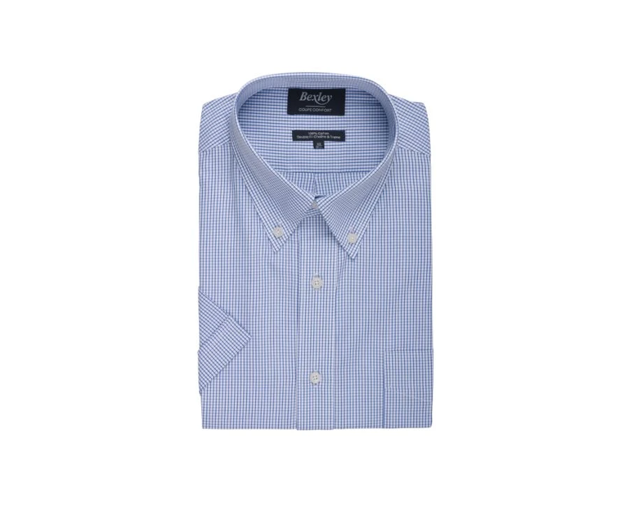 Chemise homme ville Manches Courtes – Chemise Coton – Coupe Confort – Col Américain