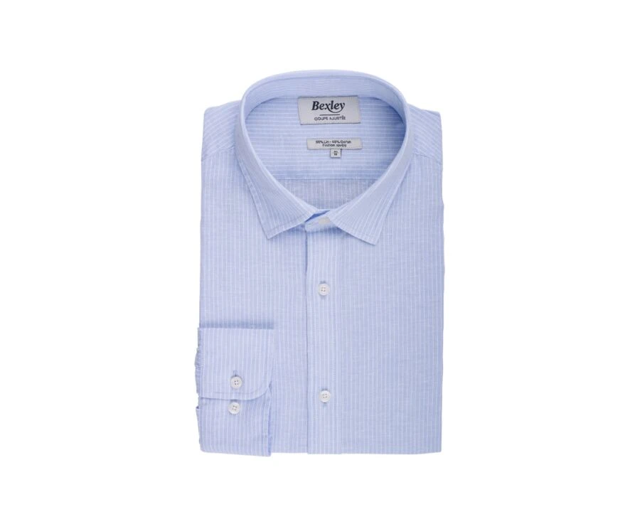 Chemise Coton Et Lin Bleu Clair Et Liseré Blanc – EDIBERT
