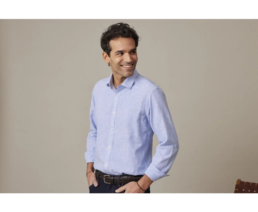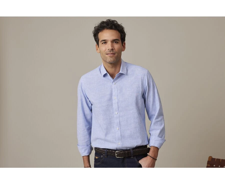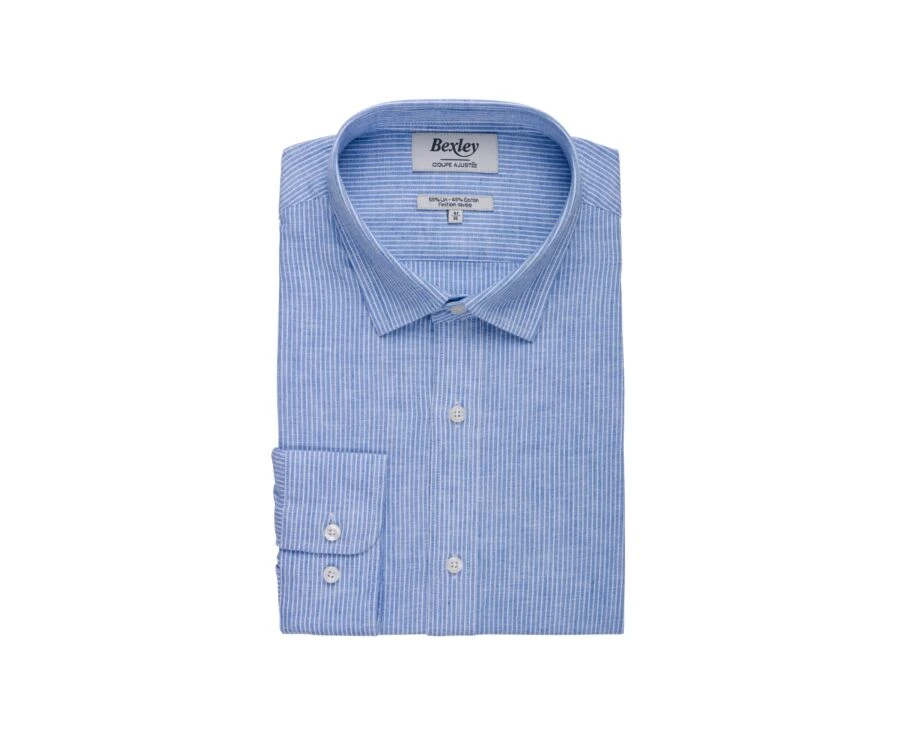 Chemise homme Edibert – Chemise coton/lin – Coupe ajustée – Col français
