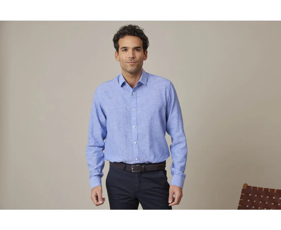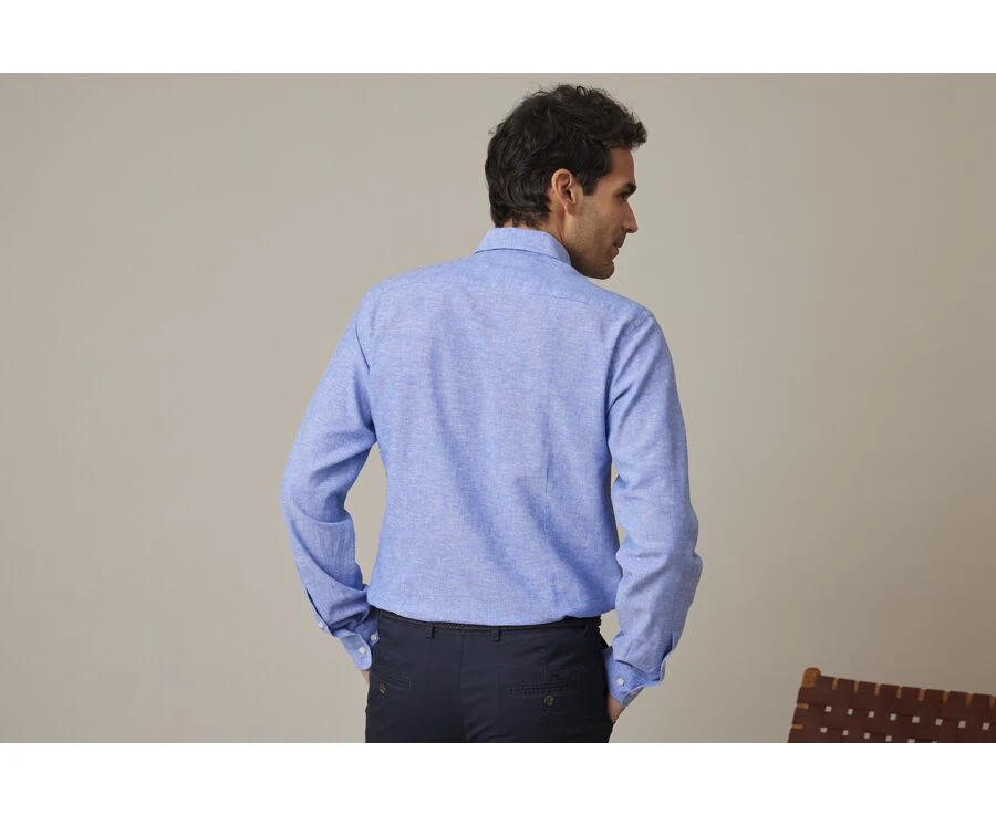 Chemise Coton Lin Chambray Bleu Et Océan – SILBERT