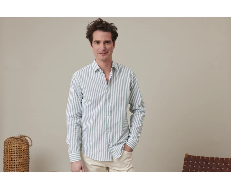 Chemise homme manches longues Simonin – Chemise coton/lin – Coupe ajustée – Col français