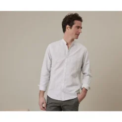 Chemise homme ville Elibert – Chemise coton/lin – Coupe ajustée raccourcie – Col officier