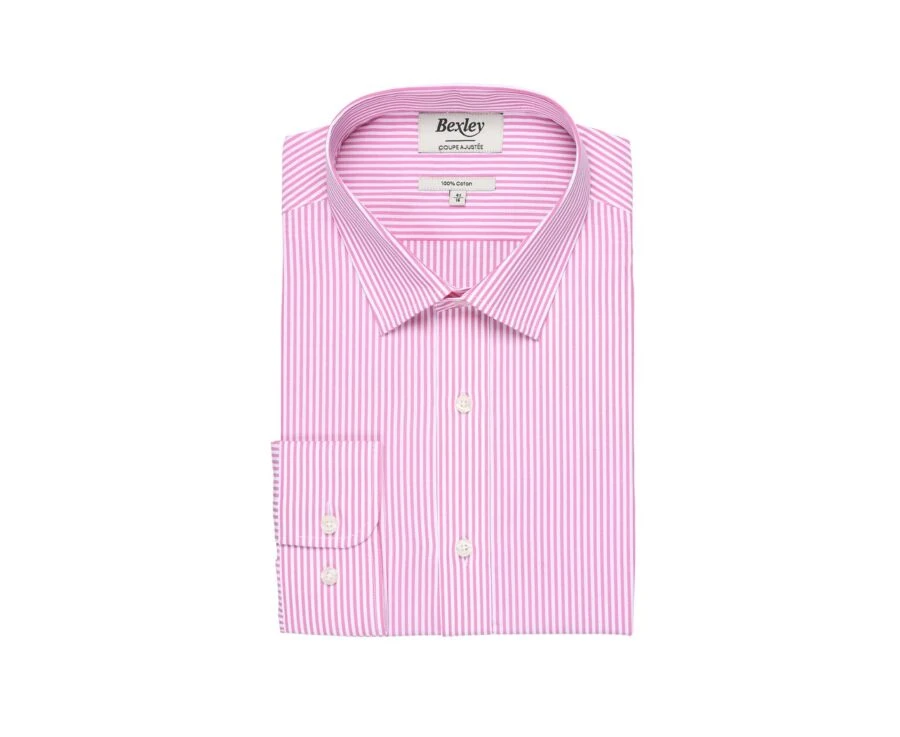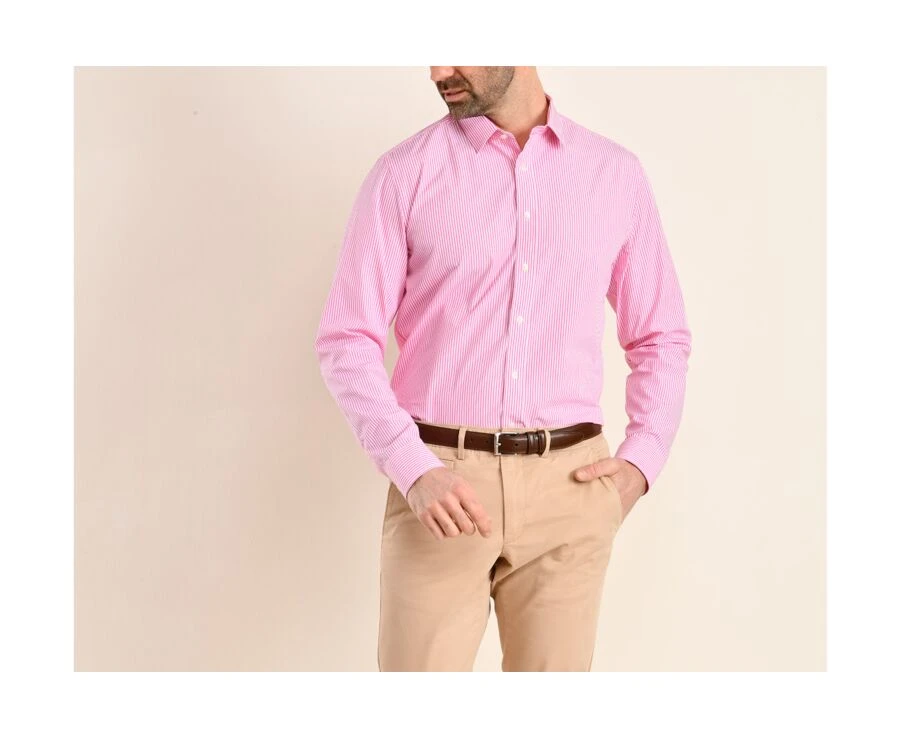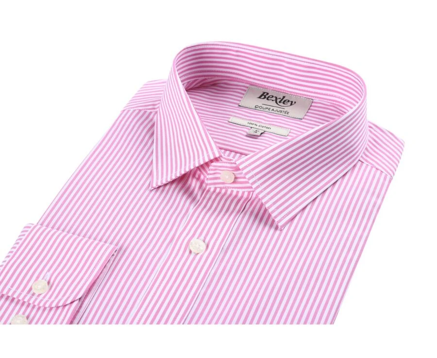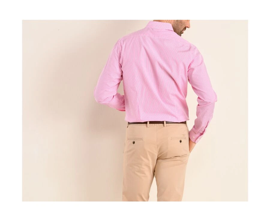 La chemise homme Maximilien Rose et blanc est réalisée en popeline 100% coton 105g/m², avec une finition toucher doux.