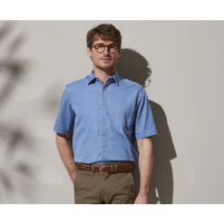 Chemise denim homme manches courtes – Chemise coton – Coupe confort – Col français
