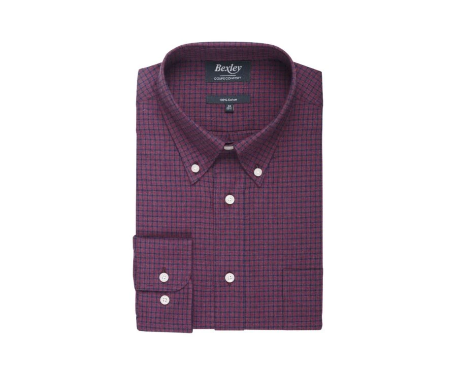 Chemise homme manches longues – Chemise coton flanelle – Coupe confort – Col américain
