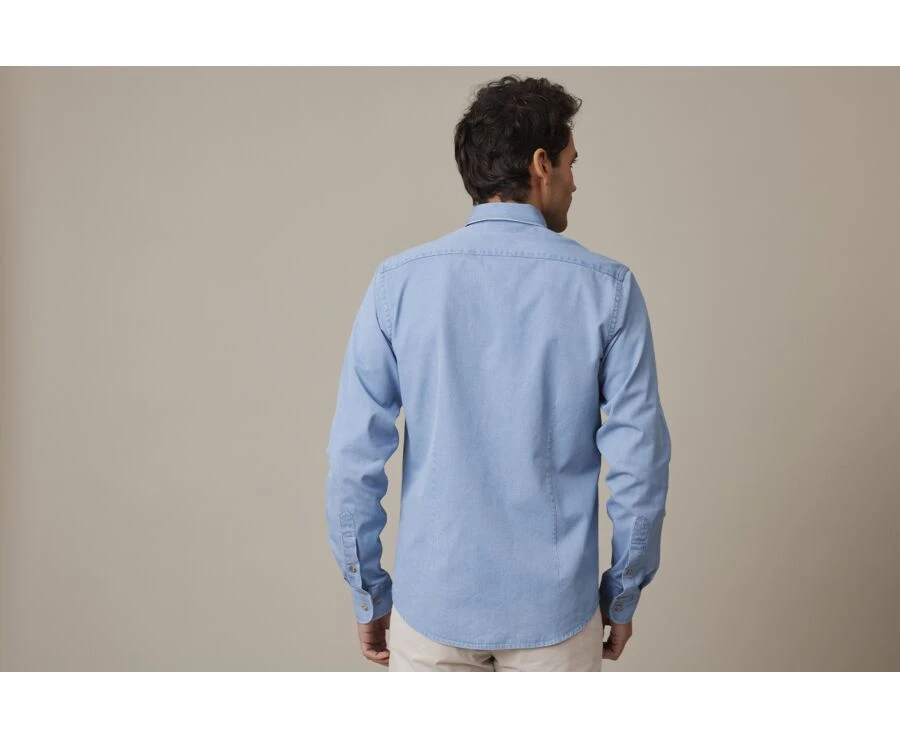 Chemise jean homme Cameron – Chemise coton – Coupe ajustée raccourcie – Col américain