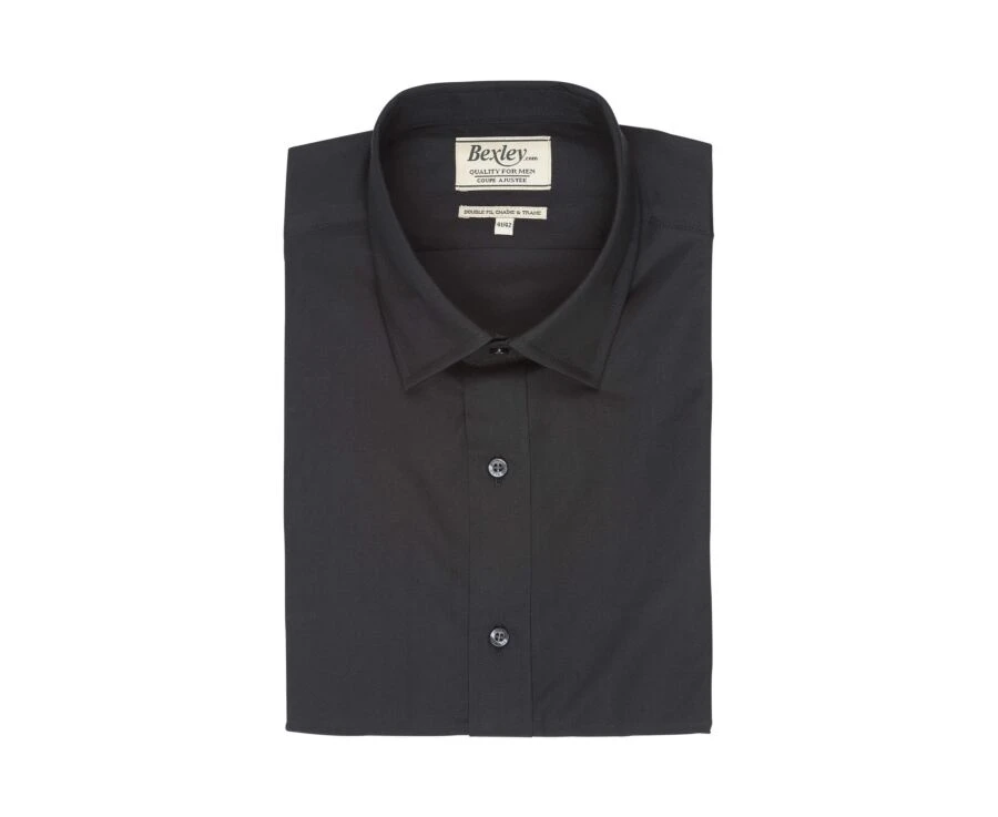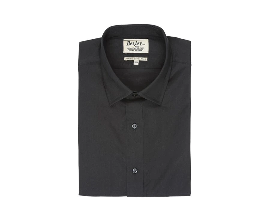 La chemise homme Louis Noir est réalisée en popeline 100% coton double fil 115g/m², avec une finition toucher doux.