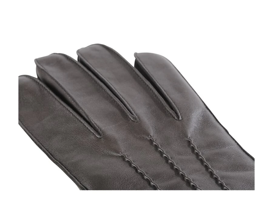 Cuir d’agneau pleine fleur avec surpiqĂ»res cousues main sur le dessus du gant.