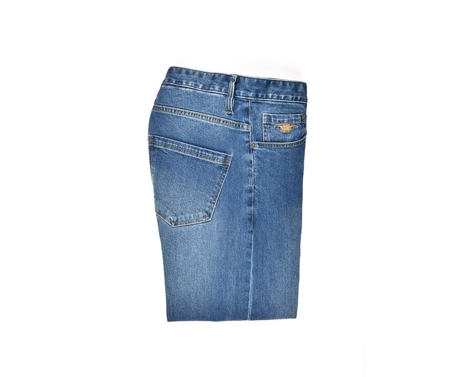 - Coupe cinq poches avec rivets métalliques et 1er bouton siglé Bexley