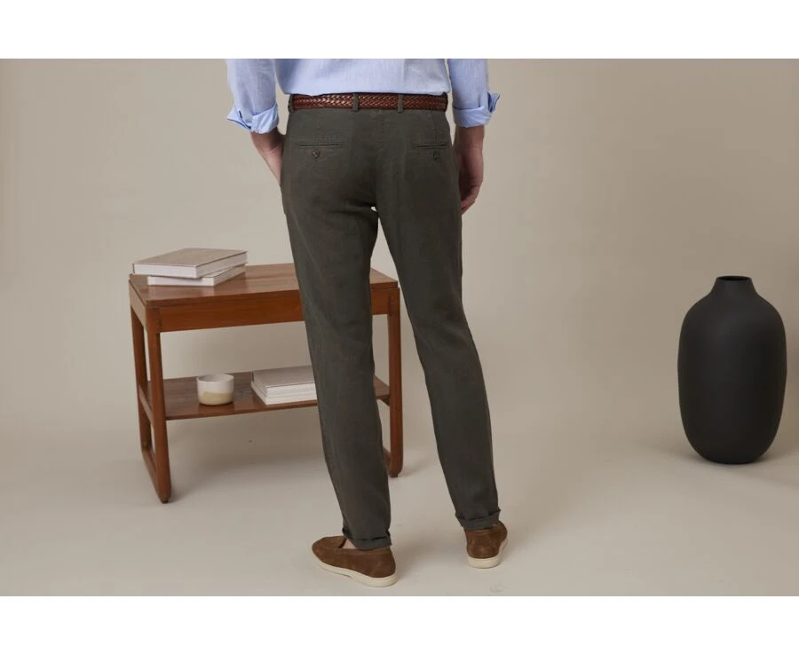 Le chino Kylson est réalisé dans une serge en 100% lin, avec une finition lavée.