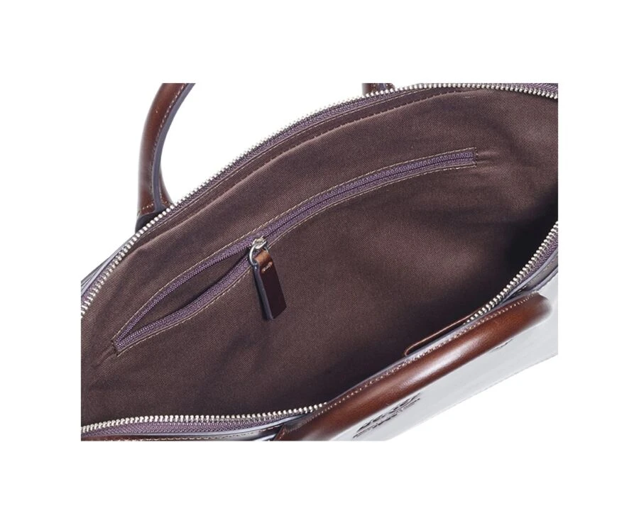 - Fermeture par un zipper en cuir, permettant une grande ouverture