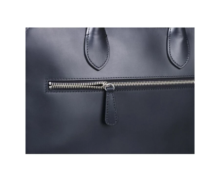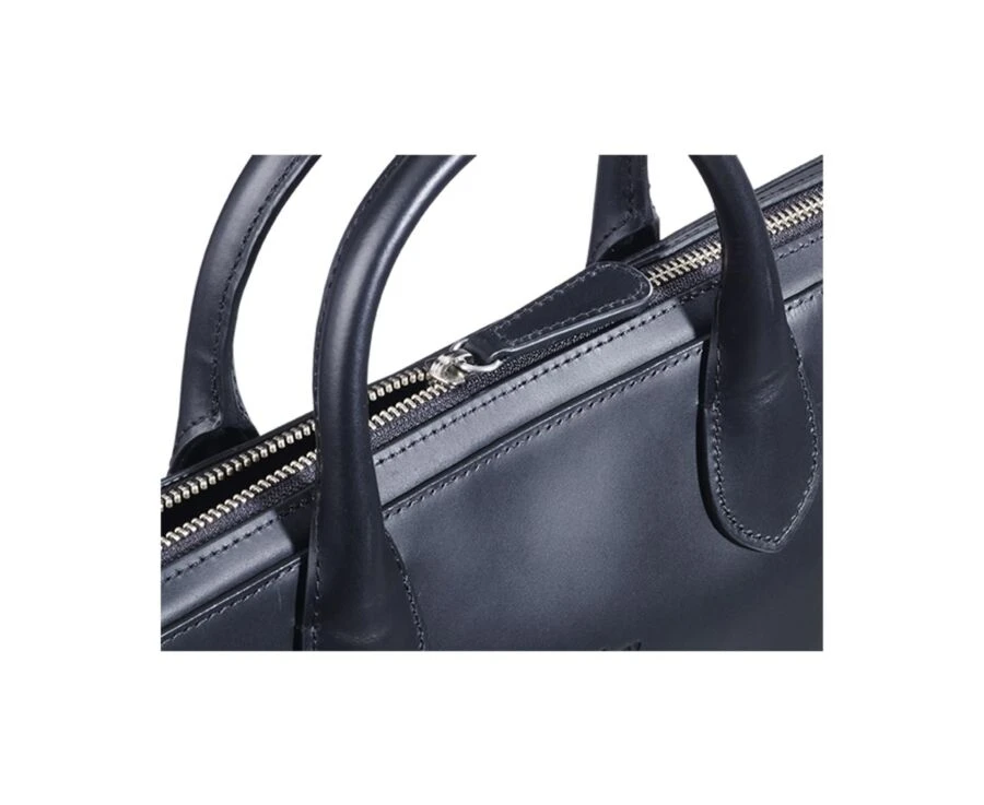 - Fermeture par un zipper en cuir, permettant une grande ouverture