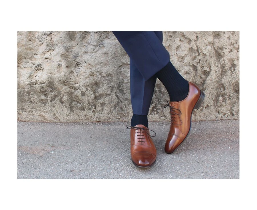Réalisée en Cousu Blake et veau aniline patiné en cuir végétal patiné à la main aux tonalités subtiles sur semelle en cuir, sans trépointe. Ce modèle sera aussi chic avec un costume qu’avec un jean.