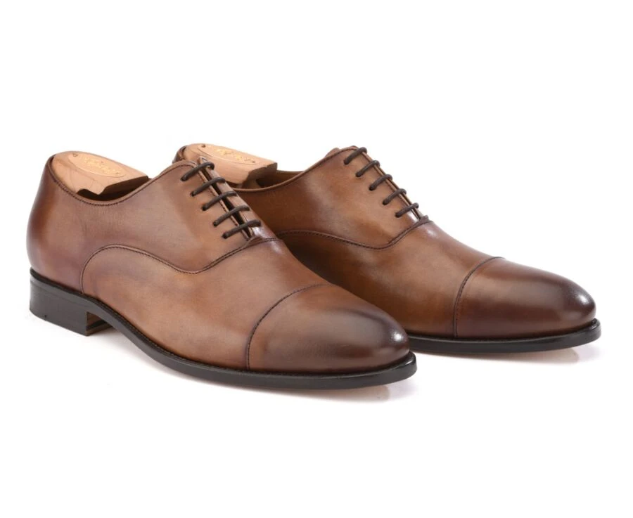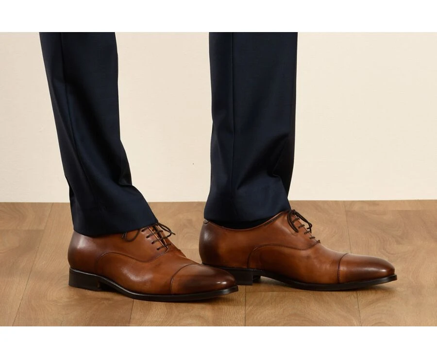 Réalisé en Cousu Blake et veau box italien patiné à la main sur semelle en cuir, avec trépointe en cuir, ce modèle sera chic en toutes circonstances.