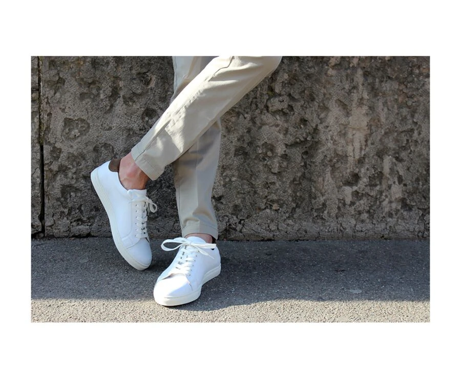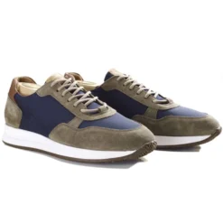 Ce sneaker est réalisé en cousu latéral et cuir de vachette, sur une semelle épaisse et confortable en caoutchouc. Renfort arrière en cuir. oeillets invisibles et lacets plats en coton cirés ton sur ton et première amovible en cuir de vachette.