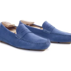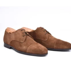Renfort arrière en cuir effet daim. Lacets plats en coton cirés et première amovible en cuir de vachette.